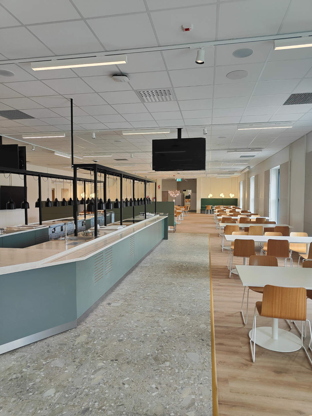 Huomioimme suunnittelussa myös tilan akustiikan, kulkureitit ja keittiöhenkilökunnan tarpeet.